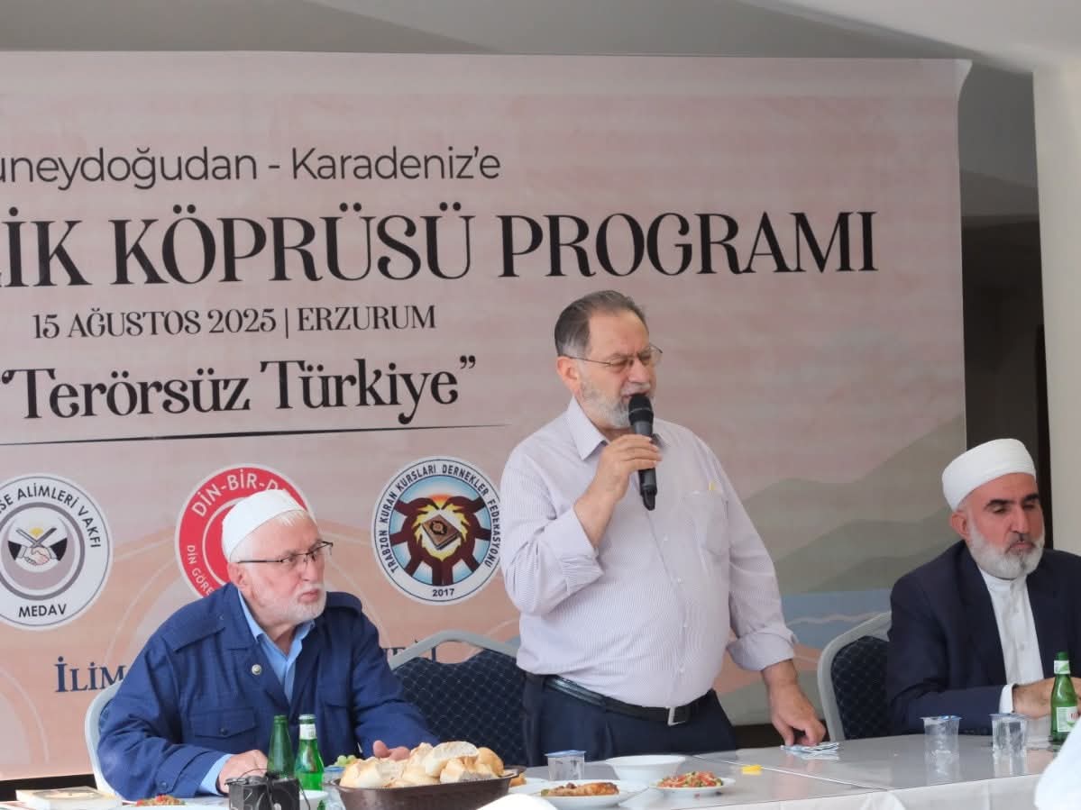 Erzurum Ulu Cami’de kılınan cuma namazıyla başlayan program kapsamında şehrin tarihi ve kültürel mekânları ziyaret edildi. Ziyaretlerin ardından Vuslat Derneği Külliyesine geçildi. Burada Erzurum Valisi Mustafa Çiftçi’nin de katılımıyla kardeşlik programı gerçekleştirildi. Programa Doğu ve Güneydoğu’dan gelen misafirlerin yanı sıra Erzurumlu kanaat önderleri, din gönüllüleri, siyasi parti ve STK temsilcileri de katıldı. Vali Çiftçi’nin katılımcılara hitap ettiği programda DİN-BİR-DER Genel Başkanı Muhittin Hamdi Yıldırım, MEDAV Genel Başkanı Muhammed Tayyip Elçi, Vuslat Derneği Başkanı Şevket Gökşan ve Prof. Dr. Mustafa Ağırman da söz alarak duygu ve düşüncelerini paylaştı.